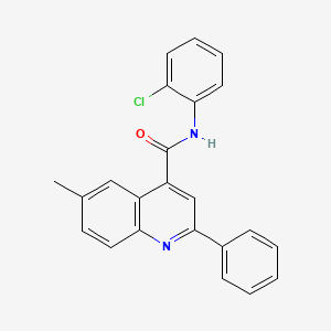Synthetic Routes and Reaction Conditions: The synthesis of N-(2-chlorophenyl)-6-methyl-2-phenylquinoline-4-carboxamide typically involves multi-step organic reactions. One common method starts with the preparation of the quinoline core, followed by the introduction of the substituents. The process may involve: