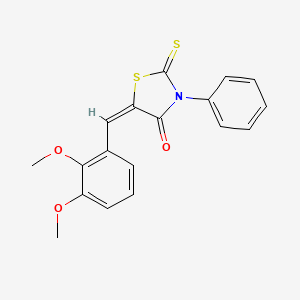 The synthesis of (5E)-5-[(2,3-dimethoxyphenyl)methylidene]-3-phenyl-2-sulfanylidene-1,3-thiazolidin-4-one typically involves the condensation of 2,3-dimethoxybenzaldehyde with 3-phenyl-2-sulfanylidene-1,3-thiazolidin-4-one under basic conditions. The reaction is usually carried out in a solvent such as ethanol or methanol, with a base like sodium hydroxide or potassium hydroxide to facilitate the condensation reaction.