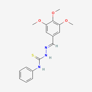 The synthesis of (2E)-N-phenyl-2-(3,4,5-trimethoxybenzylidene)hydrazinecarbothioamide typically involves the condensation of 3,4,5-trimethoxybenzaldehyde with phenylhydrazinecarbothioamide. The reaction is carried out under reflux conditions in an ethanol solvent. The reaction mixture is heated gently to facilitate the formation of the desired product. The structure of the compound is confirmed through various spectroscopic techniques such as infrared spectroscopy (IR), nuclear magnetic resonance (NMR), and mass spectrometry (MS) .