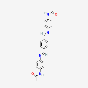 The synthesis of N-[4-({(E)-[4-((E)-{[4-(acetylamino)phenyl]imino}methyl)phenyl]methylidene}amino)phenyl]acetamide typically involves the condensation of 4-acetylaminobenzaldehyde with 4-acetylaminobenzylamine under acidic or basic conditions. The reaction is usually carried out in a solvent such as ethanol or methanol, and the product is purified by recrystallization .