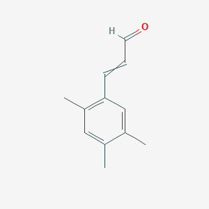 3-(2,4,5-Trimethylphenyl)prop-2-enal is a cinnamaldehyde derivative characterized by a propenal (α,β-unsaturated aldehyde) backbone attached to a 2,4,5-trimethylphenyl group. Its IUPAC name is (E)-3-(2,4,5-trimethylphenyl)prop-2-enal, and it belongs to the class of aromatic aldehydes. The compound’s structure features three methyl substituents on the benzene ring at positions 2, 4, and 5, which influence its steric and electronic properties.