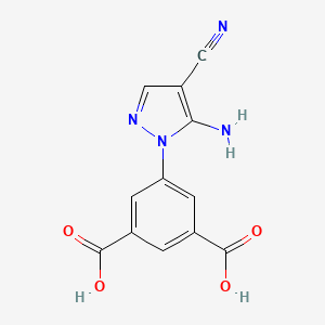 The mechanism of action of 5-(5-Amino-4-cyano-1H-pyrazol-1-yl)isophthalic acid is not fully understood. its biological activity is likely related to its ability to interact with specific molecular targets, such as enzymes or receptors, through hydrogen bonding, π-π interactions, and other non-covalent interactions. These interactions can modulate the activity of the target molecules, leading to various biological effects .