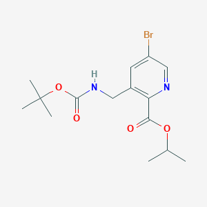 The synthesis of Isopropyl 5-bromo-3-(((tert-butoxycarbonyl)amino)methyl)picolinate typically involves the reaction of 5-bromo-3-picolinic acid with tert-butoxycarbonyl (Boc)-protected amine and isopropyl alcohol. The reaction is carried out under controlled conditions to ensure the formation of the desired product .
