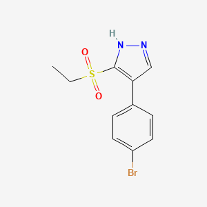 The mechanism of action of 4-(4-Bromophenyl)-3-(ethylsulfonyl)-1H-pyrazole involves its interaction with specific molecular targets. The bromophenyl group can interact with hydrophobic pockets in proteins, while the ethylsulfonyl group can form hydrogen bonds with amino acid residues. These interactions can modulate the activity of enzymes and receptors, leading to various biological effects.
