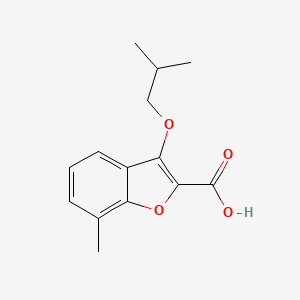 The mechanism of action of 3-Isobutoxy-7-methylbenzofuran-2-carboxylic acid involves its interaction with specific molecular targets and pathways. Benzofuran derivatives are known to exert their effects by binding to specific enzymes or receptors, thereby modulating their activity. For instance, some benzofuran compounds have been shown to inhibit the activity of certain enzymes involved in cancer cell proliferation . The exact molecular targets and pathways may vary depending on the specific derivative and its intended application.