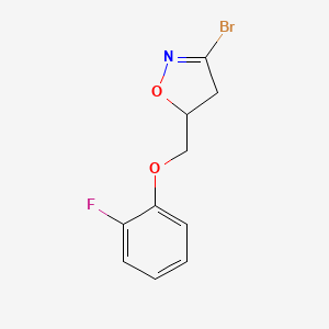 The synthesis of 3-Bromo-5-((2-fluorophenoxy)methyl)-4,5-dihydroisoxazole typically involves the reaction of 2-fluorophenol with a brominated isoxazole precursor. The reaction conditions often include the use of a base such as potassium carbonate and a solvent like dimethylformamide (DMF). The reaction is carried out under reflux conditions to ensure complete conversion of the starting materials to the desired product.