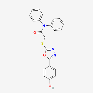 2-((5-(4-Hydroxyphenyl)-1,3,4-oxadiazol-2-yl)thio)-N,N-diphenylacetamide is a complex organic compound that features a unique combination of functional groups, including an oxadiazole ring, a thioether linkage, and a diphenylacetamide moiety. This compound is of significant interest in the field of medicinal chemistry due to its potential biological activities and applications in various scientific research areas.
