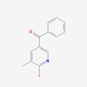 The mechanism of action of (6-Iodo-5-methylpyridin-3-yl)(phenyl)methanone involves its interaction with specific molecular targets and pathways. For instance, it may inhibit certain enzymes or proteins involved in cellular processes, leading to its observed biological effects . The exact molecular targets and pathways are still under investigation, and further research is needed to elucidate its detailed mechanism of action .