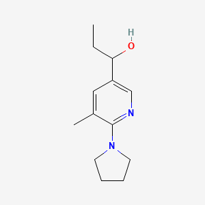 The mechanism of action of 1-(5-Methyl-6-(pyrrolidin-1-yl)pyridin-3-yl)propan-1-ol involves its interaction with specific molecular targets, such as enzymes or receptors. The pyrrolidine and pyridine rings can interact with active sites, while the propanol group can form hydrogen bonds, stabilizing the compound’s binding to its target. This interaction can modulate the activity of the target, leading to various biological effects.