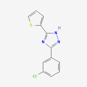 The synthesis of 3-(3-Chlorophenyl)-5-(thiophen-2-yl)-1H-1,2,4-triazole typically involves the cyclization of appropriate precursors under specific conditions. One common method involves the reaction of 3-chlorobenzoyl chloride with thiophene-2-carboxylic acid hydrazide in the presence of a base such as triethylamine. The reaction mixture is then heated to promote cyclization, forming the desired triazole compound.
