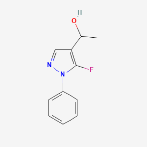 1-(5-Fluoro-1-phenyl-1H-pyrazol-4-yl)ethan-1-ol is a pyrazole derivative noted for its potential biological activities. This compound features a fluorine atom at the 5-position of the pyrazole ring and an ethan-1-ol moiety, contributing to its unique pharmacological properties. Research indicates that pyrazole derivatives are promising candidates in medicinal chemistry due to their diverse biological activities, including anticancer, anti-inflammatory, and antimicrobial effects.