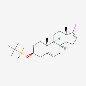 The mechanism of action of tert-butyl(((3S,8R,9S,10R,13S,14S)-17-iodo-10,13-dimethyl-2,3,4,7,8,9,10,11,12,13,14,15-dodecahydro-1H-cyclopenta[a]phenanthren-3-yl)oxy)dimethylsilane involves its interaction with specific molecular targets. The iodine atom and the dimethylsilane moiety play crucial roles in its reactivity. The compound can form covalent bonds with biological molecules, leading to changes in their structure and function. The pathways involved in its mechanism of action include nucleophilic substitution and oxidation-reduction reactions.