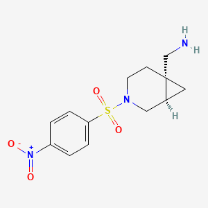 The synthesis of 1-[(1R,6S)-3-(4-nitrobenzenesulfonyl)-3-azabicyclo[4.1.0]heptan-6-yl]methanamine typically involves multiple steps. One common synthetic route includes the following steps: