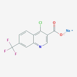 The mechanism of action of Sodium 4-chloro-7-(trifluoromethyl)quinoline-3-carboxylate involves its interaction with specific molecular targets and pathways. The compound can bind to enzymes or receptors, modulating their activity and leading to various biological effects. The exact molecular targets and pathways may vary depending on the specific application and context of use.