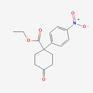The mechanism of action of Ethyl 1-(4-Nitrophenyl)-4-oxocyclohexanecarboxylate is primarily based on its ability to interact with biological molecules. The nitrophenyl group can form hydrogen bonds and electrostatic interactions with proteins and enzymes, potentially inhibiting their activity. The compound may also undergo metabolic transformations, leading to the formation of active metabolites that exert biological effects.