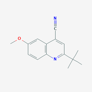 The synthesis of 2-(Tert-butyl)-6-methoxyquinoline-4-carbonitrile typically involves multi-step organic reactions. One common method is the cyclization of appropriate precursors under controlled conditions. For instance, starting from 2-amino-4-tert-butyl-6-methoxybenzonitrile, the compound can be synthesized through a series of reactions including nitration, reduction, and cyclization.