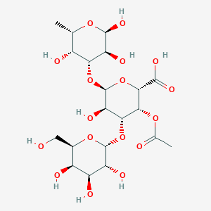 (2S,3R,4R,5R,6S)-3-acetyloxy-5-hydroxy-4-[(2R,3R,4S,5R,6R)-3,4,5-trihydroxy-6-(hydroxymethyl)oxan-2-yl]oxy-6-[(2R,3S,4R,5R,6S)-2,3,5-trihydroxy-6-methyloxan-4-yl]oxyoxane-2-carboxylic acid is a heteropolysaccharide, a type of complex carbohydrate composed of long chains of monosaccharide units linked by glycosidic bonds. Polysaccharides are naturally occurring macromolecular polymers found in various sources such as plants, microorganisms, algae, and animals . This compound is known for its unique structural properties and diverse biological activities, making it a subject of interest in various scientific fields.
