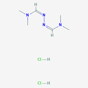 The synthesis of N’-[(Z)-dimethylaminomethylideneamino]-N,N-dimethylmethanimidamide;dihydrochloride typically involves the reaction of dimethylamine with formaldehyde and subsequent treatment with hydrochloric acid to form the dihydrochloride salt. The reaction conditions often require controlled temperatures and pH levels to ensure the desired product is obtained with high purity.
