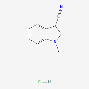 1-Methylindoline-3-carbonitrile hydrochloride can be synthesized through various methods, including the use of indole derivatives and carbonitriles. The synthesis often involves the reaction of 1-methylindole with appropriate reagents under controlled conditions to yield the desired product. Characterization techniques such as Nuclear Magnetic Resonance (NMR) spectroscopy and Mass Spectrometry (MS) are typically employed to confirm the structure and purity of the compound.