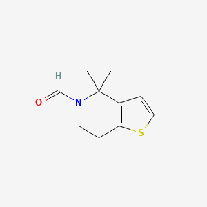 The mechanism of action of 4,4-Dimethyl-6,7-dihydrothieno[3,2-c]pyridine-5(4H)-carbaldehyde involves its interaction with specific molecular targets. The compound may inhibit certain enzymes or receptors, leading to a cascade of biochemical events. The exact pathways and targets can vary depending on the specific application and context of use .