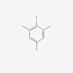 This compound is a halogenated aromatic hydrocarbon featuring an iodine atom flanked by two methyl groups on a benzene ring, with a third methyl group in the para position. This substitution pattern (2-iodo-1,3,5-trimethylbenzene) confers significant steric hindrance around the carbon-iodine bond, a feature that defines its reactivity and utility in synthesis.[1] Its symmetrical nature and the electron-donating effect of the three methyl groups make the aromatic ring highly activated towards electrophilic substitution, yet the steric bulk influences subsequent reactions at the iodine center.
