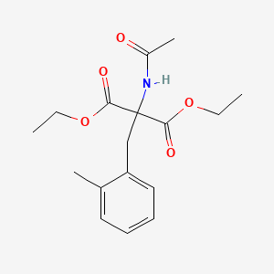 The mechanism of action of diethyl 2-(acetylamino)-2-(2-methylbenzyl)malonate depends on its specific application. In biological systems, it may interact with enzymes or receptors, influencing biochemical pathways. The molecular targets and pathways involved would require detailed study through experimental research.