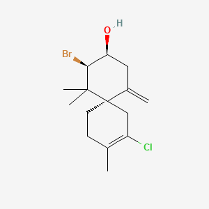 The marine environment is a rich reservoir of unique chemical entities with significant pharmacological potential. Among these, secondary metabolites from marine algae have emerged as a promising source of novel drug leads. The genus Laurencia, a member of the Rhodomelaceae family, is renowned for its production of a diverse array of halogenated terpenes, particularly sesquiterpenes. This compound, a notable example, is a brominated and chlorinated sesquiterpene with a characteristic spiro[5.5]undecane core.