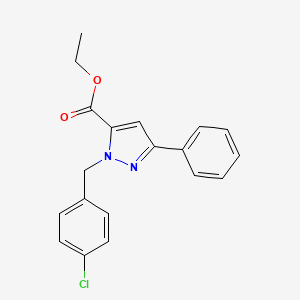 Ethyl 1-(4-chlorobenzyl)-3-phenyl-1H-pyrazole-5-carboxylate is unique due to its specific substitution pattern on the pyrazole ring, which imparts distinct chemical and biological properties. Its combination of a 4-chlorobenzyl group, a phenyl group, and an ethyl ester group makes it a versatile compound for various applications in scientific research.