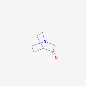 This compound is characterized by a bicyclic structure known as a quinuclidine (B89598) ring system, which is a 1-azabicyclo[2.2.2]octane core.[1] The molecule's rigidity is a key feature, stemming from the fused ring system where the nitrogen atom is located at a bridgehead position. A ketone functional group is present at the C-3 position, which is a primary site for various chemical transformations.[1] This combination of a rigid scaffold and a reactive ketone group makes it a valuable building block in synthetic chemistry.[1]