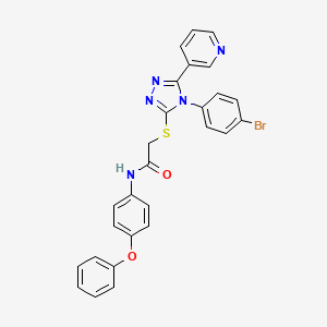 The mechanism of action of 2-{[4-(4-bromophenyl)-5-(pyridin-3-yl)-4H-1,2,4-triazol-3-yl]sulfanyl}-N-(4-phenoxyphenyl)acetamide involves its interaction with specific molecular targets and pathways. The triazole ring is known to interact with various enzymes and receptors, potentially inhibiting their activity and leading to the observed biological effects . The exact molecular targets and pathways involved would require further detailed studies.