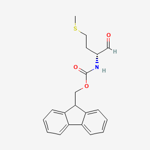 9H-fluoren-9-ylmethyl N-[(2R)-4-methylsulfanyl-1-oxobutan-2-yl]carbamate is a complex organic compound that has garnered interest in various fields of scientific research This compound is characterized by its unique structure, which includes a fluorenylmethyl group and a carbamate linkage
