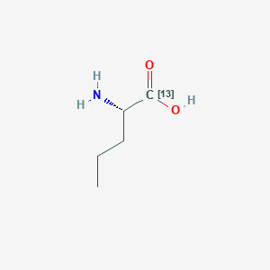 L-Norvaline-1-¹³C is an isotopically labeled variant of L-Norvaline, where a ¹³C atom replaces the naturally occurring ¹²C atom at the first carbon position of the molecule. This specific labeling allows L-Norvaline-1-¹³C to be precisely tracked within metabolic pathways using techniques like mass spectrometry researchgate.netnumberanalytics.comtechnologynetworks.com. While L-Norvaline itself is not typically incorporated into proteins, its labeled form can be used in metabolic studies to trace its uptake, distribution, and metabolic fate, or as a standard in quantitative analyses. The ability to precisely label specific positions within amino acids, such as the C1 position, is critical for detailed metabolic flux analysis, providing insights into the origins and transformations of metabolic intermediates nih.gov.