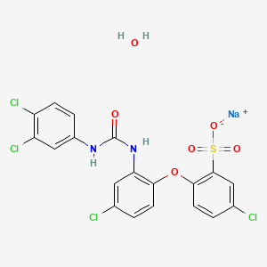 C1=CC(=C(C=C1NC(=O)NC2=C(C=CC(=C2)Cl)OC3=C(C=C(C=C3)Cl)S(=O)(=O)[O-])Cl)Cl.O.[Na+] |