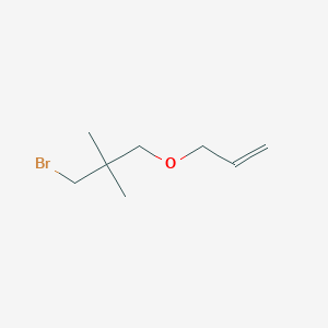 The synthesis of 3-(3-Bromo-2,2-dimethylpropoxy)prop-1-ene typically involves the reaction of 3-bromo-2,2-dimethylpropanol with an appropriate alkylating agent under controlled conditions . The reaction is usually carried out in the presence of a base, such as sodium hydroxide or potassium carbonate, to facilitate the formation of the desired product .