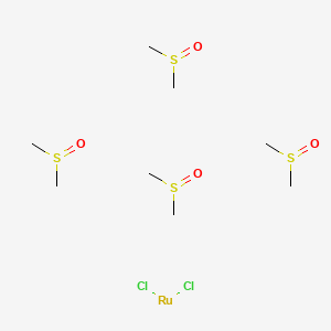 The mechanism of action of Dichlorotetrakis(dimethyl sulfoxide)ruthenium II involves its ability to interact with biological molecules. The compound can bind to DNA and proteins, disrupting their normal functions. This interaction is believed to be responsible for its potential anti-cancer properties . The molecular targets and pathways involved include the inhibition of DNA replication and the induction of apoptosis in cancer cells .
