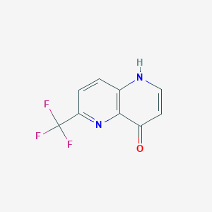 The mechanism of action of 6-Trifluoromethyl-[1,5]naphthyridin-4-ol involves its interaction with specific molecular targets, such as enzymes and receptors. The trifluoromethyl group enhances the compound’s lipophilicity, allowing it to penetrate cell membranes more effectively. The hydroxyl group can form hydrogen bonds with target proteins, enhancing binding affinity . These interactions can modulate the activity of the target proteins, leading to the compound’s observed biological effects.