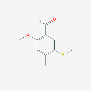 Synthetic Routes and Reaction Conditions: The synthesis of Benzaldehyde, 2-methoxy-4-methyl-5-(methylthio)- typically involves the functionalization of a benzaldehyde derivative. One common method includes the methylation of 2-hydroxy-4-methyl-5-(methylthio)benzaldehyde using methyl iodide in the presence of a base such as potassium carbonate. The reaction is carried out under reflux conditions to ensure complete methylation.