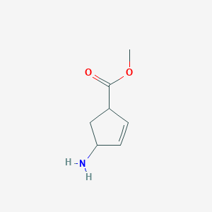The mechanism of action of Methyl 4-aminocyclopent-2-ene-1-carboxylate involves its interaction with specific molecular targets and pathways. The amino group can form hydrogen bonds and participate in various biochemical interactions, while the carboxylate ester can undergo hydrolysis to release active metabolites. These interactions can modulate biological processes and pathways, leading to the compound’s observed effects.