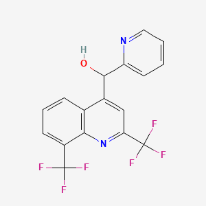 The mechanism by which (2,8-Bis-trifluoromethyl-quinolin-4-yl)-pyridin-2-yl-methanol exerts its effects depends on its specific application. In medicinal chemistry, for example, it may act by binding to specific enzymes or receptors, thereby modulating their activity. The trifluoromethyl groups can enhance the compound’s binding affinity through hydrophobic interactions and electronic effects, while the quinoline and pyridine rings can participate in π-π stacking interactions with aromatic residues in the target protein.
