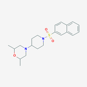 The mechanism of action of 2,6-dimethyl-4-[1-(2-naphthylsulfonyl)-4-piperidyl]morpholine involves its interaction with specific molecular targets, such as enzymes or receptors. The naphthylsulfonyl group is believed to play a key role in binding to these targets, while the piperidyl group may influence the compound’s overall conformation and activity. The exact pathways involved depend on the specific application and target.