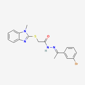 The synthesis of N-[(Z)-1-(3-bromophenyl)ethylideneamino]-2-(1-methylbenzimidazol-2-yl)sulfanylacetamide typically involves multi-step organic reactions. One common synthetic route includes the condensation of 3-bromobenzaldehyde with 1-methylbenzimidazole-2-thiol in the presence of a suitable base to form the intermediate compound. This intermediate is then reacted with ethylideneamine under controlled conditions to yield the final product .