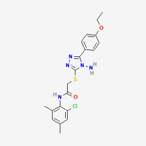 This compound belongs to the 1,2,4-triazole-3-thioacetamide class, characterized by a triazole core substituted with a thioether-linked acetamide moiety. The 4-ethoxyphenyl group at position 5 of the triazole ring and the 2-chloro-4,6-dimethylphenyl group on the acetamide nitrogen define its structural uniqueness.