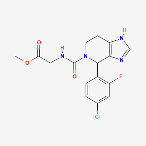 InChI=1S/C16H16ClFN4O3/c1-25-13(23)7-19-16(24)22-5-4-12-14(21-8-20-12)15(22)10-3-2-9(17)6-11(10)18/h2-3,6,8,15H,4-5,7H2,1H3,(H,19,24)(H,20,21) |