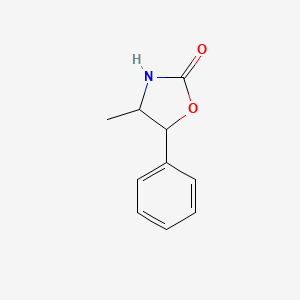 4-Methyl-5-phenyl-1,3-oxazolidin-2-one is a chiral heterocyclic compound with the molecular formula C₁₀H₁₁NO₂ (average mass: 177.203 g/mol). It features a five-membered oxazolidinone ring substituted with a methyl group at position 4 and a phenyl group at position 5 . Its stereoisomeric forms, such as (4S,5R) and (4R,5S), are critical in asymmetric synthesis, where chirality dictates reactivity and biological activity .