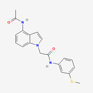 The mechanism of action of 2-[4-(acetylamino)-1H-indol-1-yl]-N-[3-(methylsulfanyl)phenyl]acetamide involves its interaction with specific molecular targets and pathways. The compound can bind to various receptors and enzymes, modulating their activity and leading to the desired biological effects. For example, it may inhibit specific enzymes involved in inflammatory pathways, thereby exerting anti-inflammatory effects.