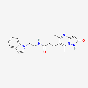 The synthesis of 3-(5,7-dimethyl-2-oxo-1,2-dihydropyrazolo[1,5-a]pyrimidin-6-yl)-N-[2-(1H-indol-1-yl)ethyl]propanamide typically involves multi-step organic reactions The initial step often includes the formation of the pyrazolopyrimidine core through cyclization reactions involving appropriate precursors