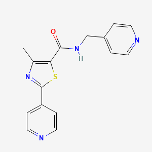 The synthesis of 4-methyl-2-(pyridin-4-yl)-N-(pyridin-4-ylmethyl)-1,3-thiazole-5-carboxamide typically involves multi-step organic reactions. One common method involves the formation of the thiazole ring through a cyclization reaction, followed by the introduction of the pyridine rings and the carboxamide group. Specific reaction conditions, such as temperature, solvents, and catalysts, are crucial for optimizing the yield and purity of the compound.