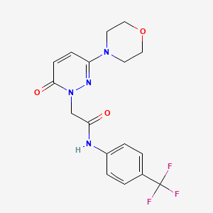 The mechanism of action of 2-[3-(morpholin-4-yl)-6-oxopyridazin-1(6H)-yl]-N-[4-(trifluoromethyl)phenyl]acetamide involves its interaction with specific molecular targets and pathways. The compound may act as an inhibitor of certain enzymes or receptors, leading to modulation of biochemical pathways. The exact molecular targets and pathways involved depend on the specific application and biological context.