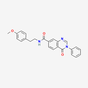 N-[2-(4-Methoxyphenyl)ethyl]-4-oxo-3-phenyl-3,4-dihydroquinazoline-7-carboxamide is a quinazoline derivative characterized by a 4-oxo-3-phenyl-3,4-dihydroquinazoline core substituted at position 7 with a carboxamide group linked to a 2-(4-methoxyphenyl)ethyl chain. Its molecular formula is C₂₄H₂₁N₃O₃, with a molecular weight of 399.45 g/mol.