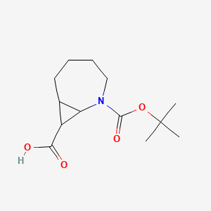 The mechanism of action of 2-[(tert-Butoxy)carbonyl]-2-azabicyclo[5.1.0]octane-8-carboxylic acid involves its interaction with various molecular targets. The tert-butoxycarbonyl (Boc) group serves as a protecting group for amines, preventing unwanted reactions during synthesis. The compound can be deprotected under acidic conditions, revealing the free amine for further reactions .